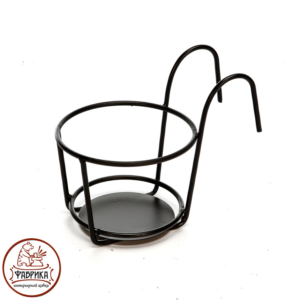 Кованая подставка для цветов. Покраска в черный цвет.  Кронштейн перекидывается через перила балкона. Подходит для одного горшечного растения. Диаметр 220 мм.
