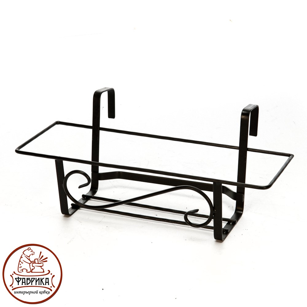 Кованая подставка для балконных ящиков, перекидывается через перила балкона. Выполнена из металла. Покраска в черный цвет.