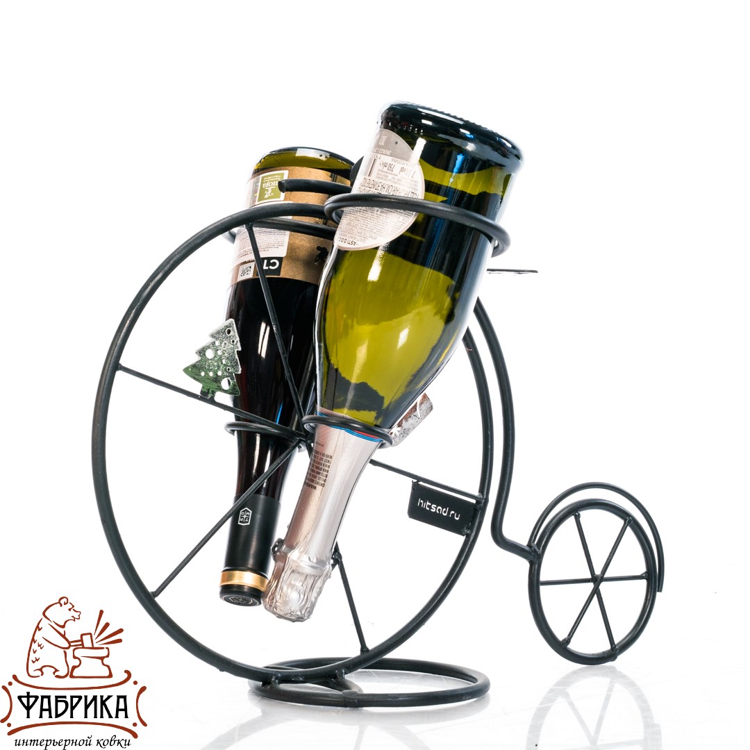 Кованая подставка в виде Велосипеда служит для хранения двух винных бутылок и декора праздничного стола. Металлический корпус подставки позволяет разместить две бутылки с напитком.