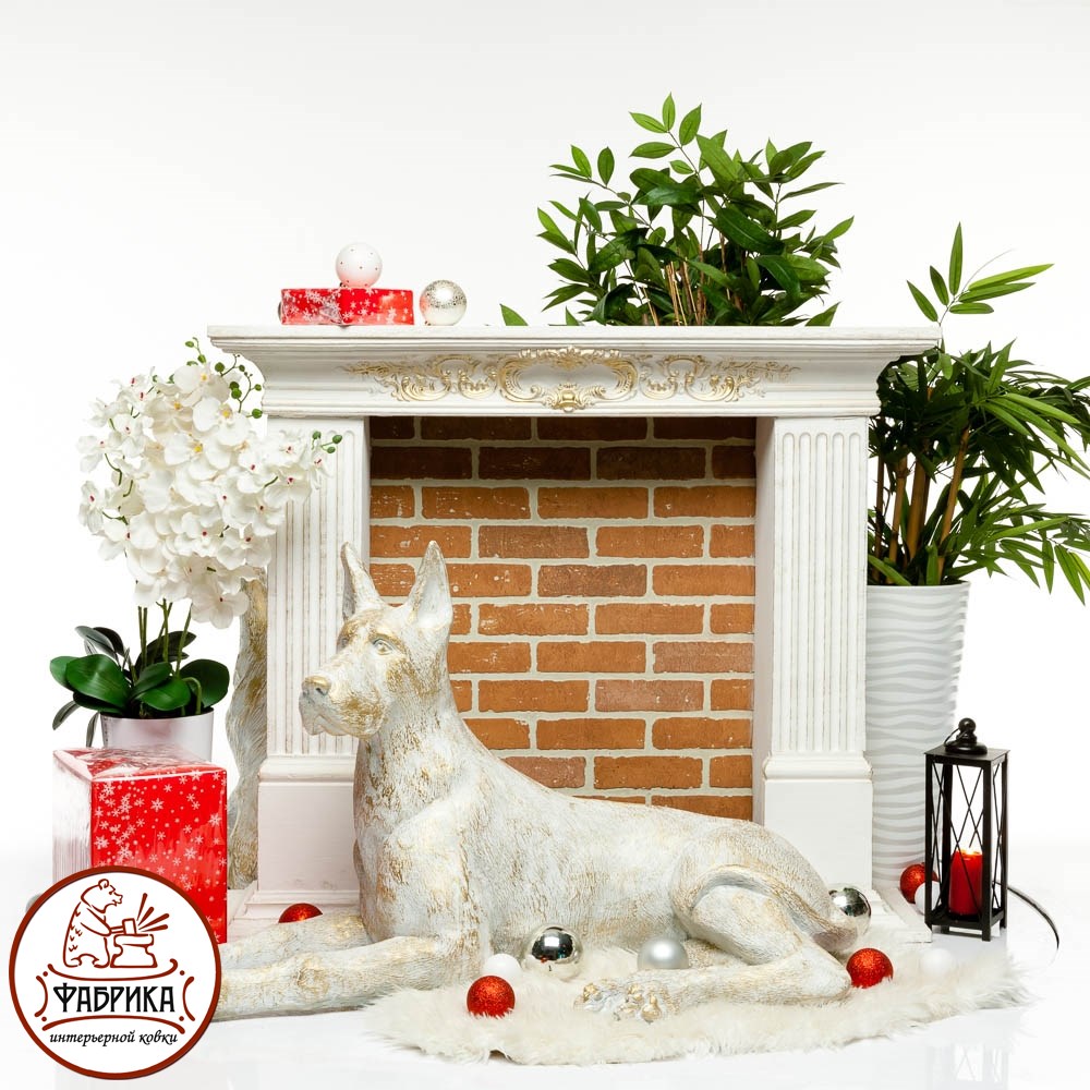 Интерьерная фигура дог- новогодняя коллекция. Композитный материал изготовления. Подходит для декора помещений, квартир, загородных домов, холлов гостиниц и ресторанов.