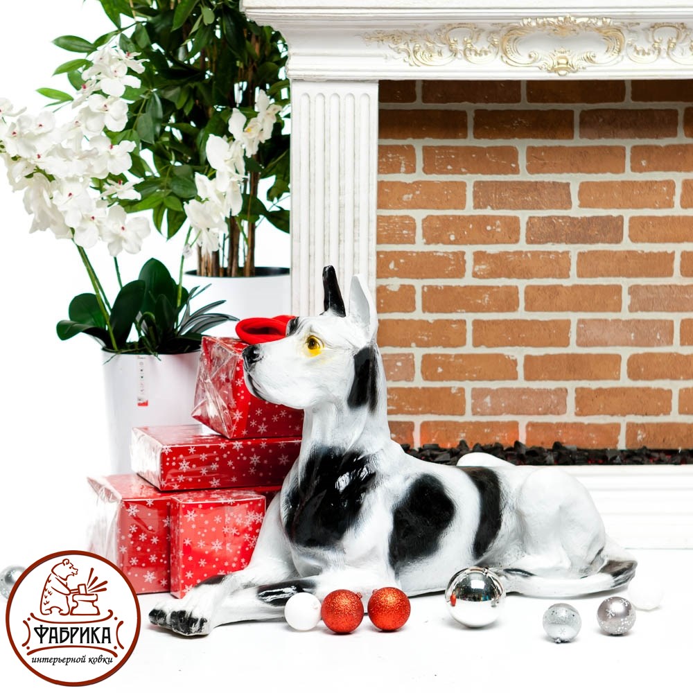 Садовая фигура Дог. Собака в точности повторяет фигуру настоящей собаки. Изготовлена скульптура из стеклопластика, прочного и влагостойкого материала. Вариант покраски: натуральный.