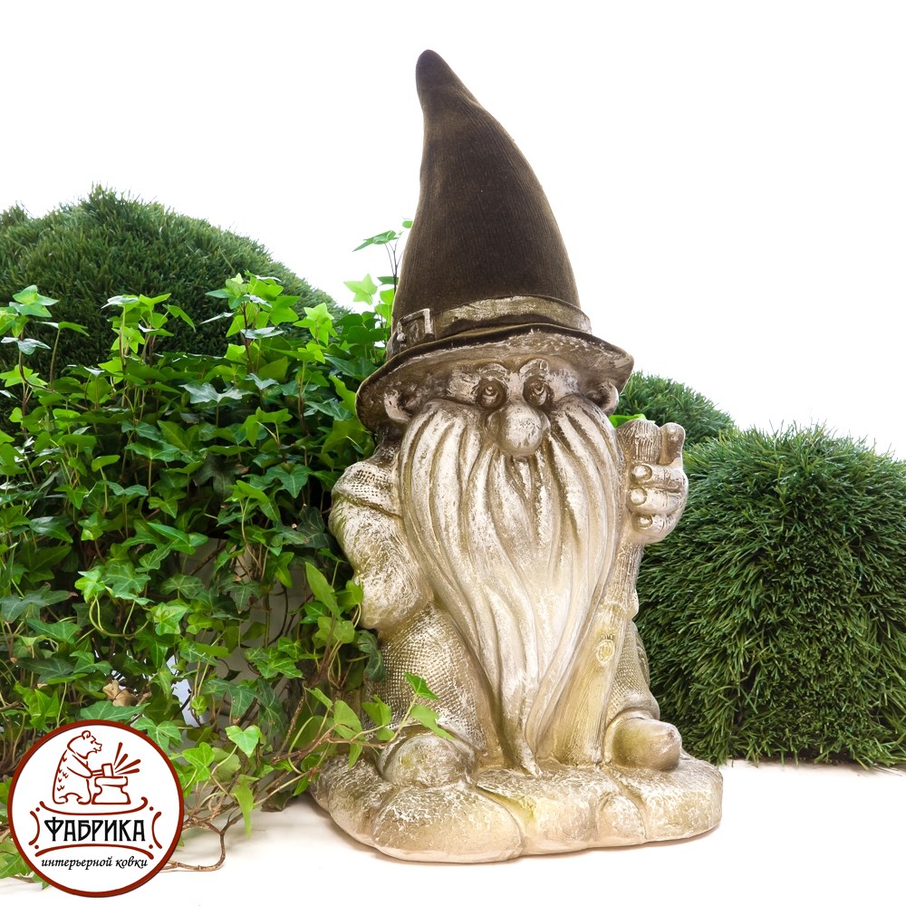 Садовая фигура Гном на пеньке. Материал изготовления: полистоун, флок.