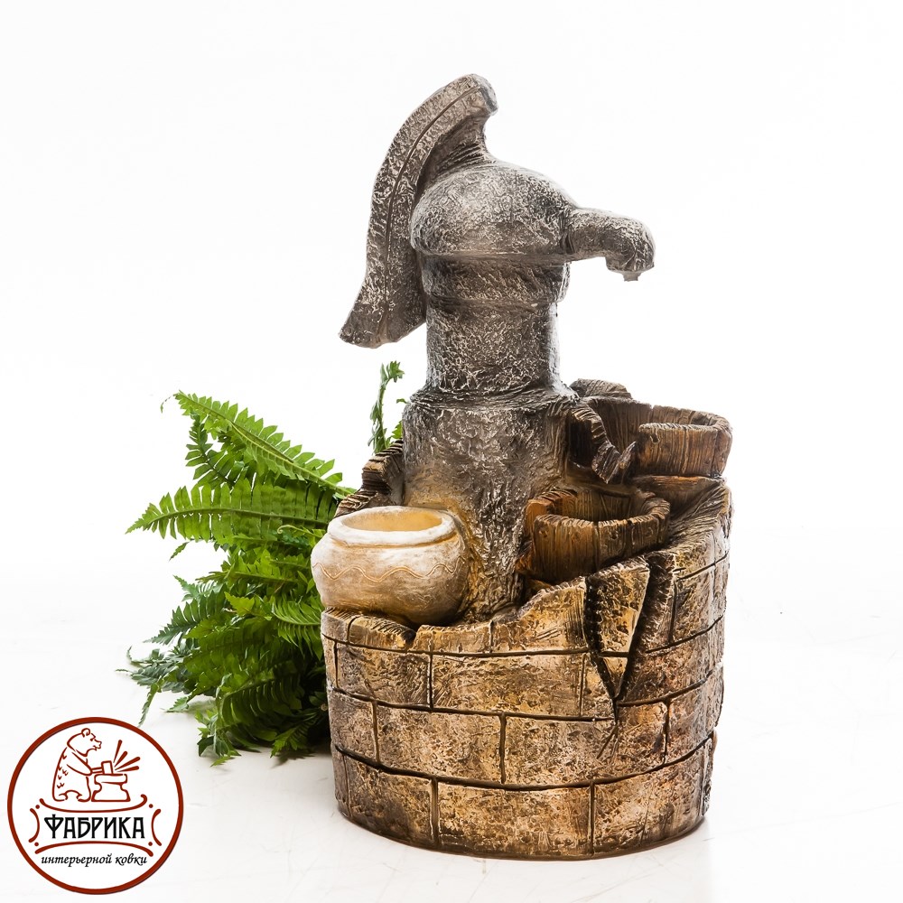 Фонтан для декора садового или дачного участка. Материал изготовления: стеклопластик. Для подключения и установки необходимы электичество и вода. Работает от сети 220V.