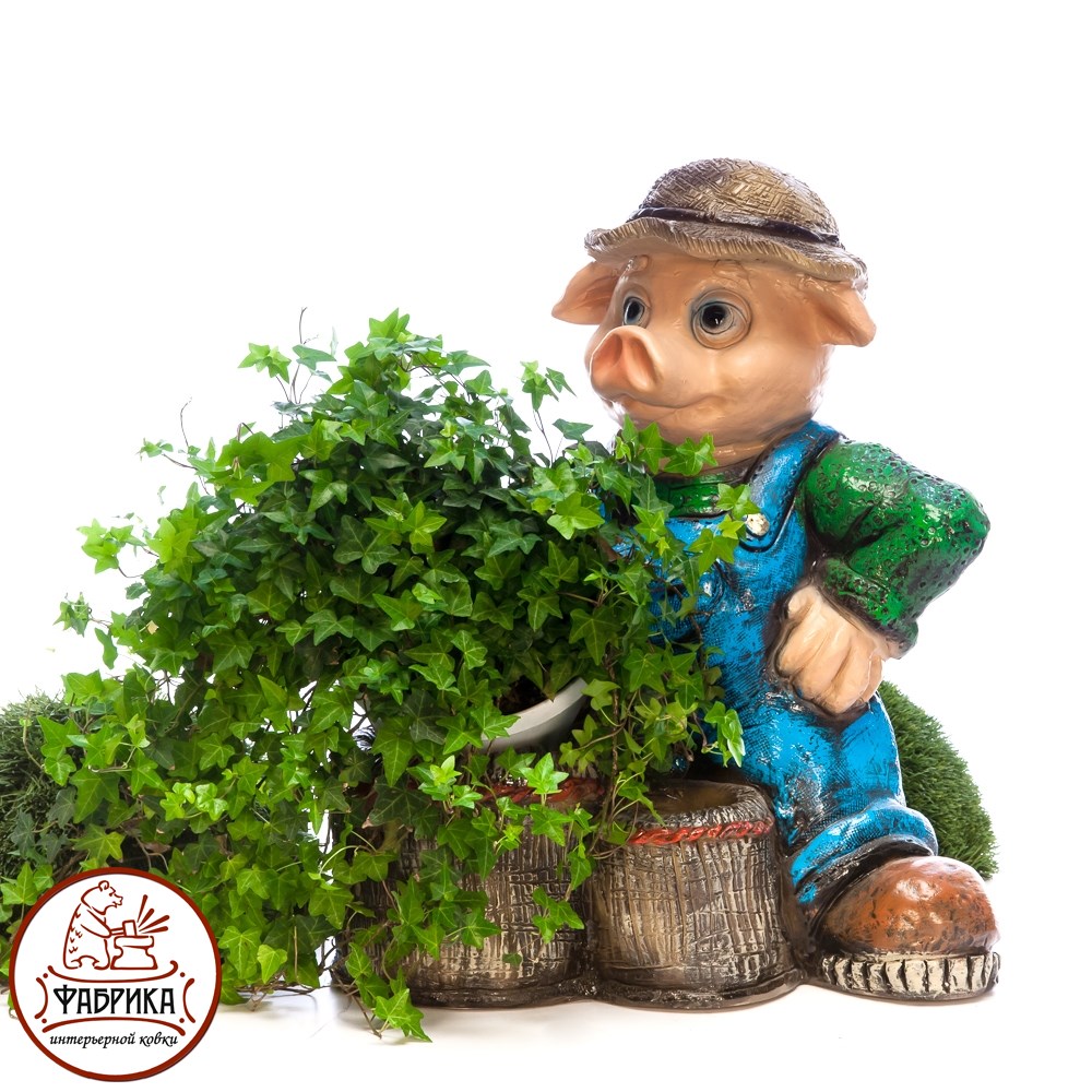 Декоративное кашпо для цветов Поросенок с корзинкой арт. F08494 впишется на любом садовом или дачном участке. Материал изготовления: полистоун. Подходит для посадки растений.