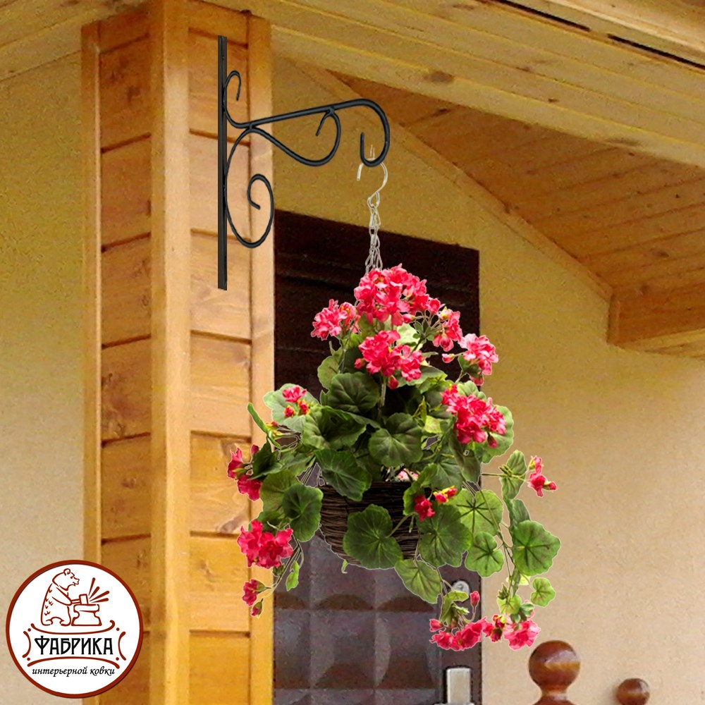 Кронштейн для цветов 52-004 и подвесных кашпо, изготовленный из прочного, кованого металла. Данная модель крепится к стенам с помощью шурупов.