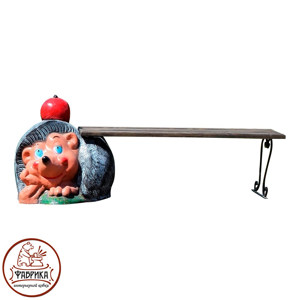 Садово-парковая скамейки еж с яблоком для ландшафтного дизайна. Изготовлена из стеклопластика с деревянными и металлическими коваными элементами. Станет прекрасным дополнением вашего садового участка.