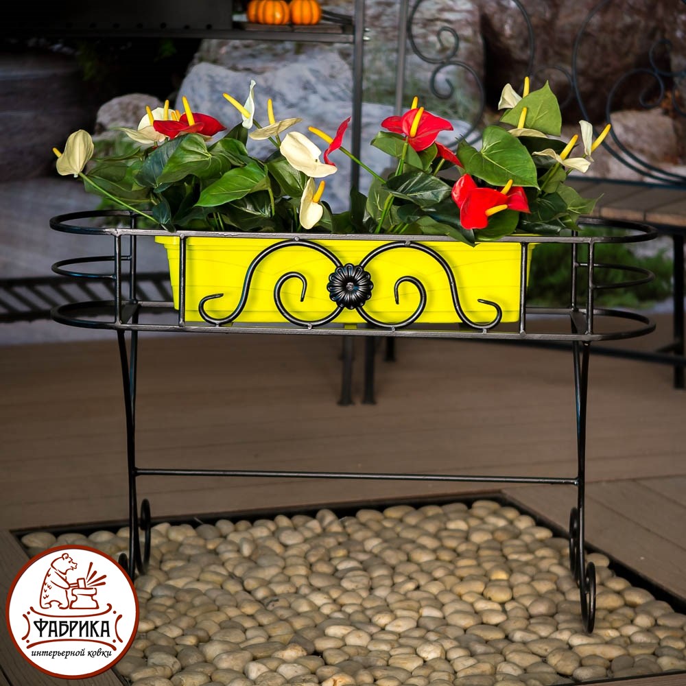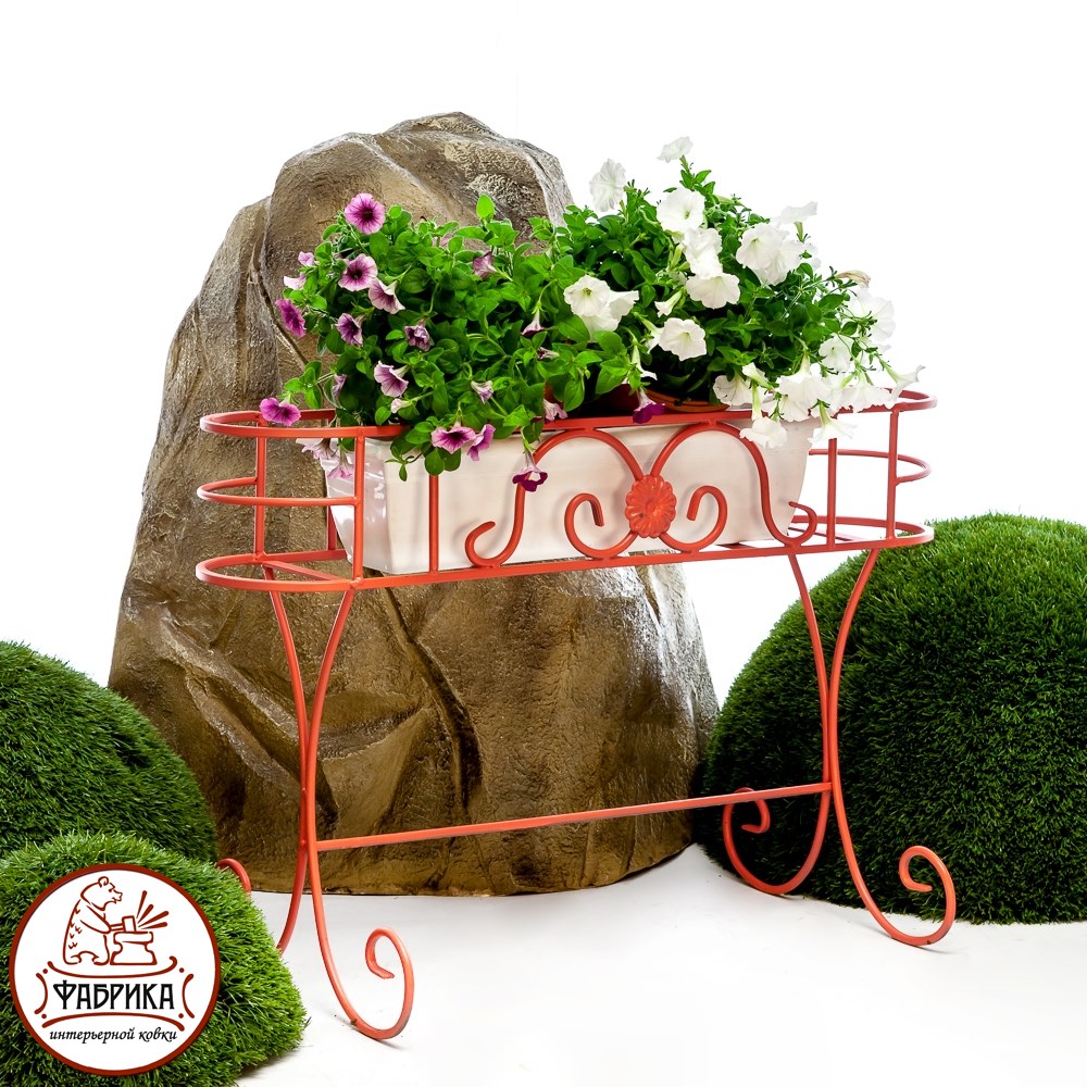 Напольная подставка 12-400 представляется собой легкую и компактную контрукцию. В подставку размещаются несколько горшечных цветков или пластиковый ящик с растениями.