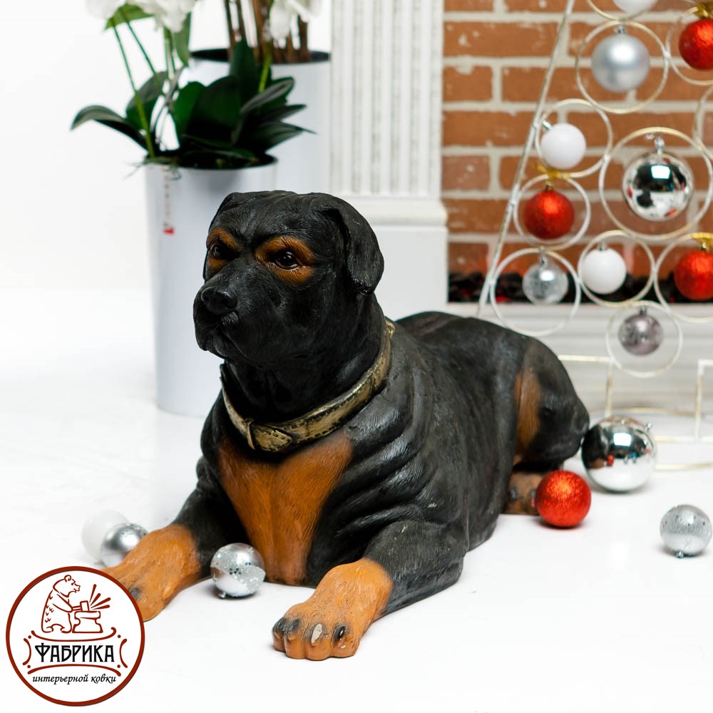 Фигура ротвейлер. Собака в точности повторяет фигуру настоящей собаки. Натуральная покраска. Материал изготовления: полистоун ударопрочный, влагостойкий.