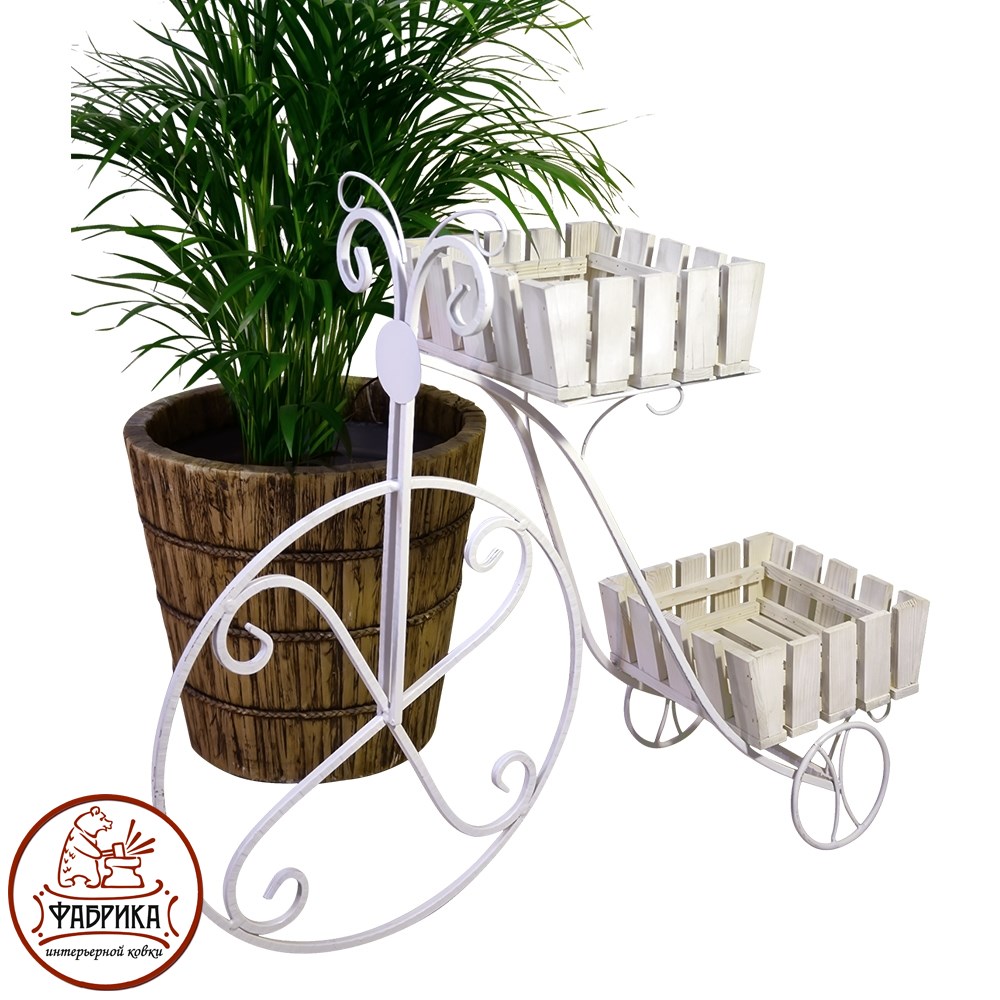 Основу конструкции садовой подставки 59-402 составляет, кованый металлический каркас и деревянные кадки для подставки растений. Данная модель имеет форму изящного, старомодного велосипеда. Выгодная оптовая цена, возможна поставка крупным и мелким оптом.