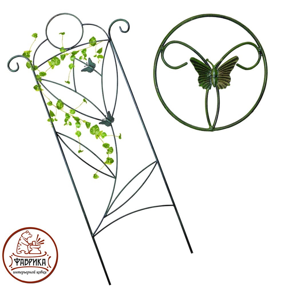 Шпалера 57-031 металлическая декорированная бабочкой и цветком. Станет идеальным украшением вашего садового участка, так как является не только средством для украшения, но и незаменимым атрибутом для хорошего роста вьющихся растений.