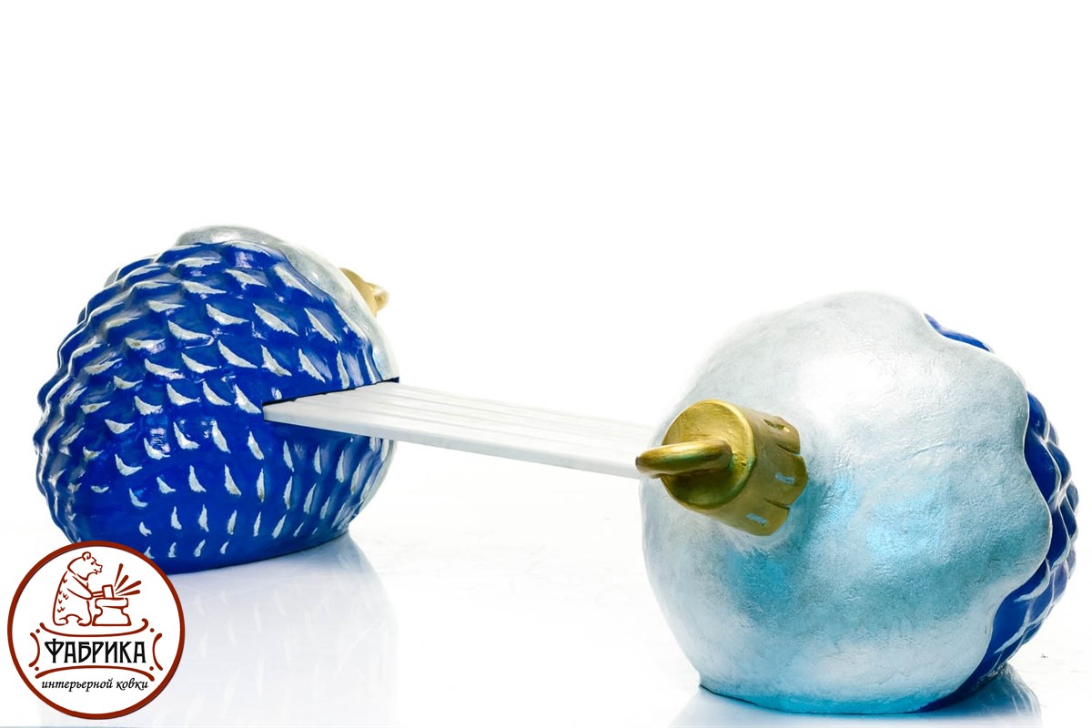 Скамейка Новогодние шишки. Шишки выполнены из стеклопластика, сиденье деревянное. Подходит для размещения 2-х взрослых человек.