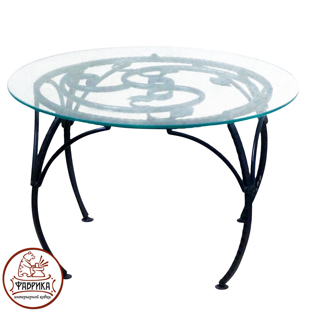 Кованый столик для гостиной. Декоративный столик вписывается в любой дизайн помещения. Стеклянная столешница прочная и крепится на силикованые присоски, входящие в комплект. Столик украсит квартиру, ресторан или гостиную загородного дома. Рядом можно поставить пуфики и удобно разместить гостей.