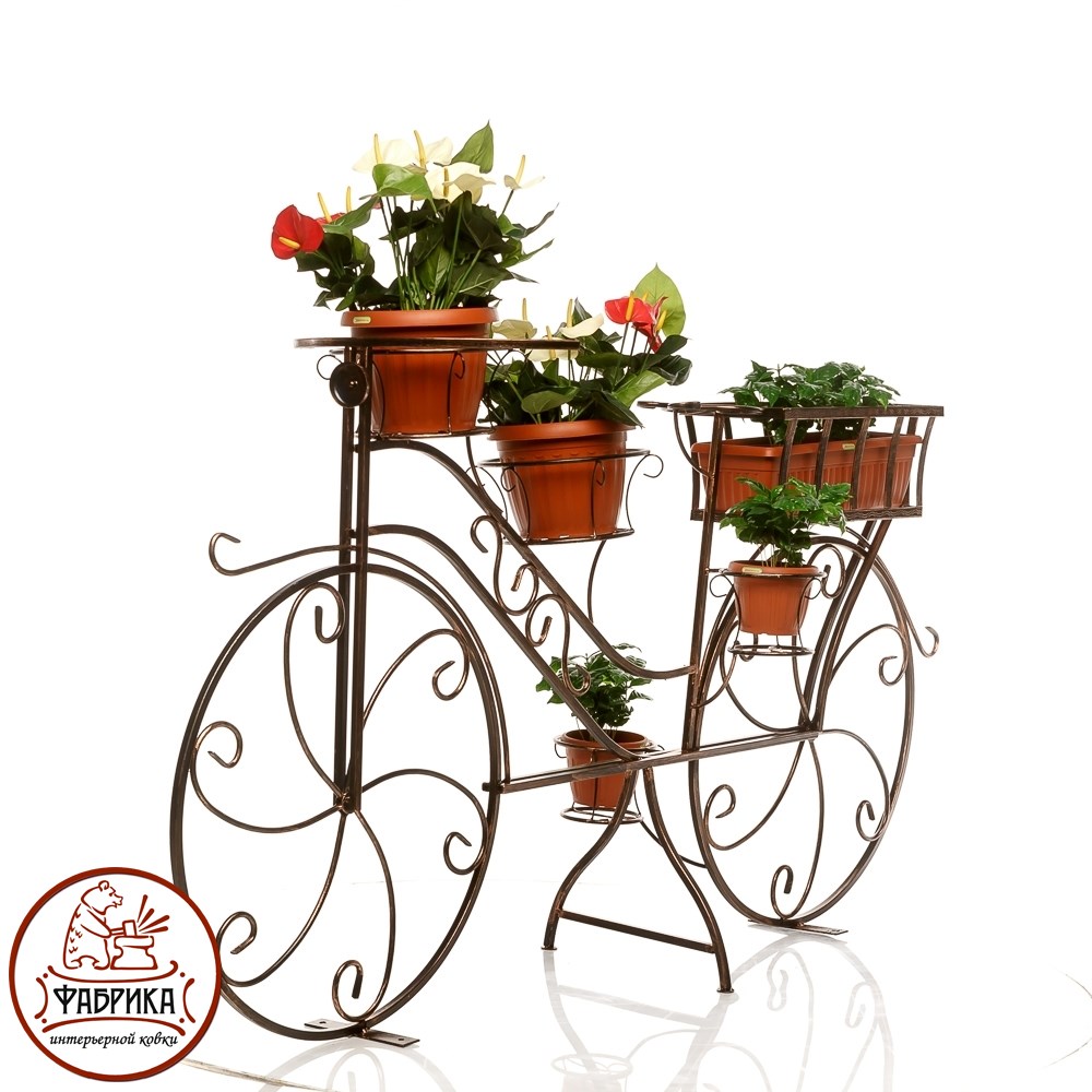 Подставка для цветов 53-604 в форме велосипеда представляет собой изящную конструкцию из кованого металла. Особенно хорошо данная модель будет выглядеть если в неё посадить вьющиеся растения. Выгодная оптовая цена, возможна поставка крупным и мелким оптом.
